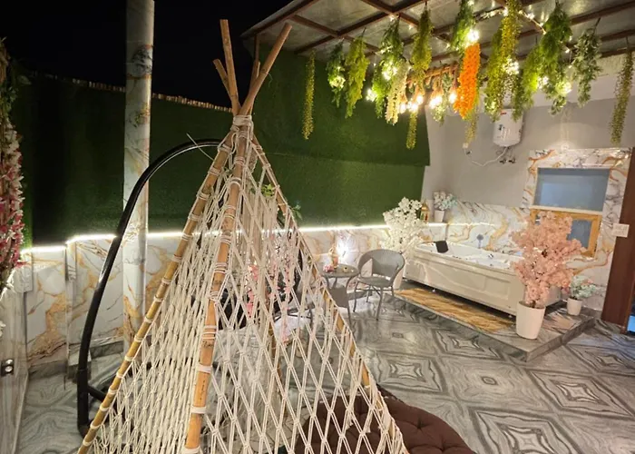 The Terrace Affair Studio With Jacuzzi Gurgaon is located in Gurgaon, 2 km from the Smaaash, and boasts a Jacuzzi. Wi-Fi and a car park are provided for guests' utmost comfort.
